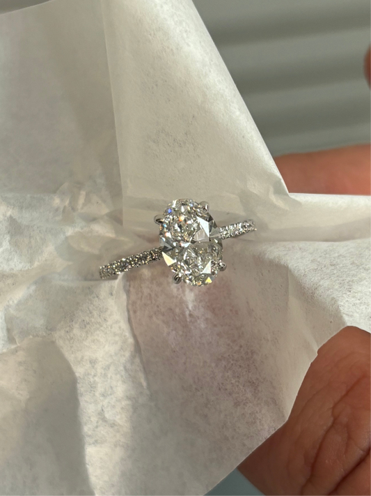 Custom 14k 1.5ct Oval Lab Engagement Ring w Low Halo 1.95tcw (Made to order)