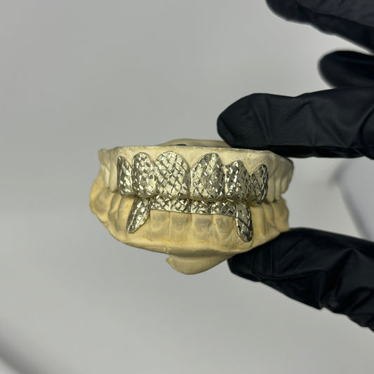 6x6 Silver Diamond Cut/Dust Grillz w Fangs